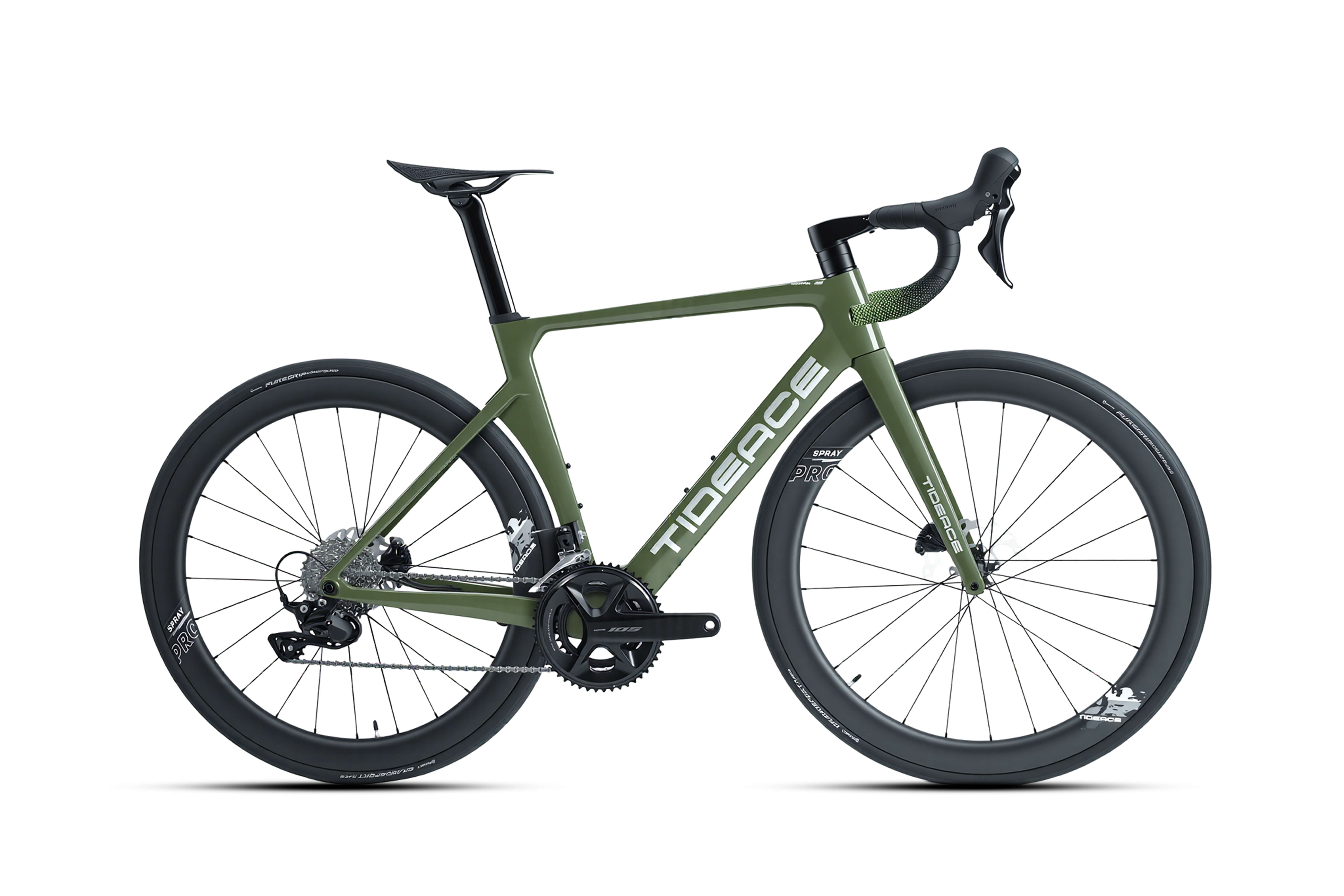 Carbon fiber frame, fork, handlebar, seatpost, wheelsets, saddleWeight: about 7.75kgIntegrated carbon fiber handlebarUltarlight carbonbike frameSHIMANO 105 R7120 GroupsetHydraulic disc brake 700*28C Tires (Max 30C)90% pre-assembled
